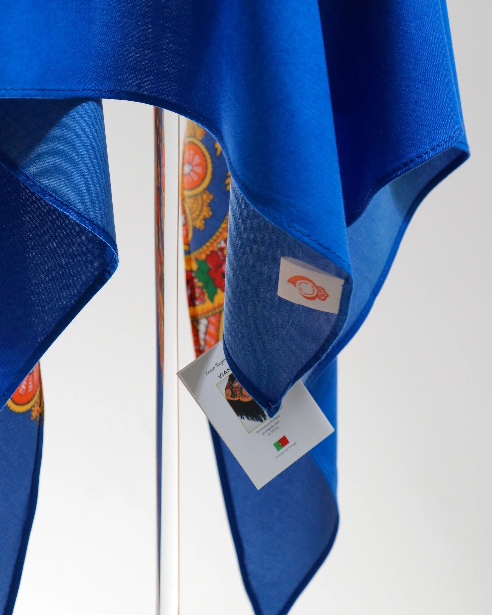 O design estampado recria o impacto visual característico dos lenços de Viana, permitindo uma utilização prática sem perder a ligação simbólica à tradição. Usado ao pescoço, nos ombros ou como apontamento de traje, este lenço assume-se como um gesto de pertença e identidade.